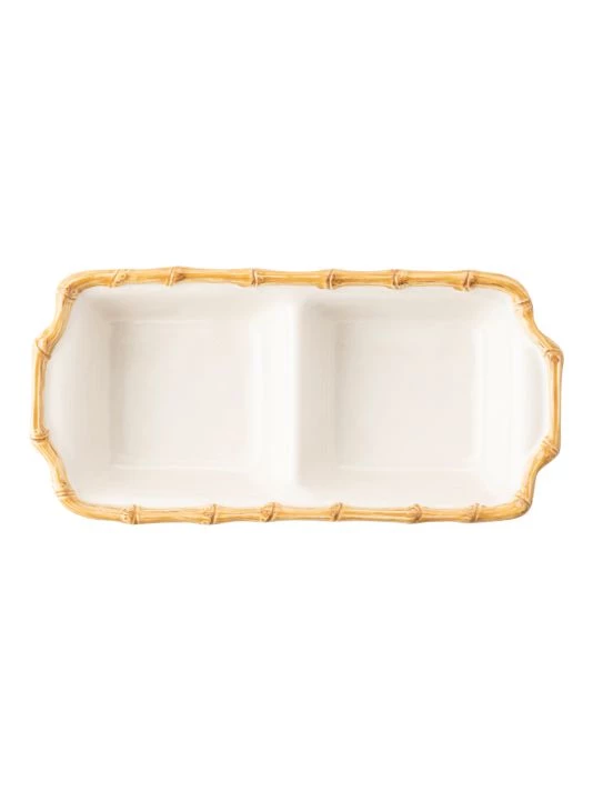 From the Bamboo Collection. Crafted from ceramic, this two-section server features sunny bamboo trim for a warming sensation.