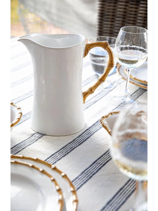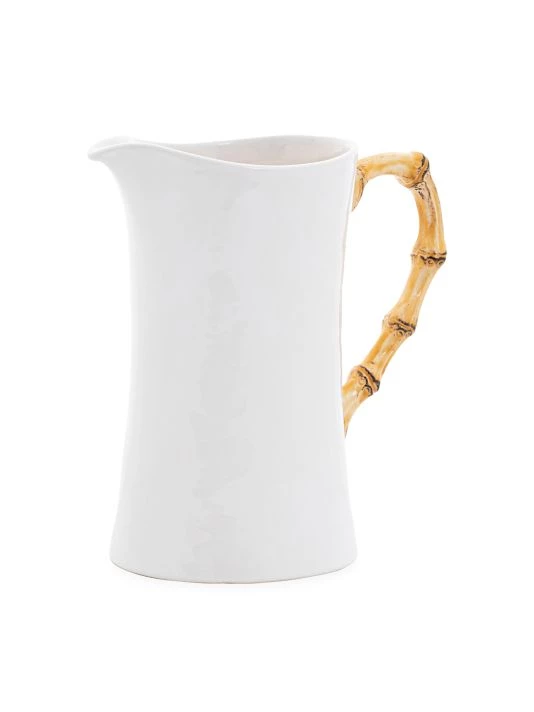 From the Bamboo Collection. Featuring a chic and pared-down silhouette, the combination of sunny bamboo and gleaming porcelain makes this ample pitcher a perfect addition to any summer tablescape.