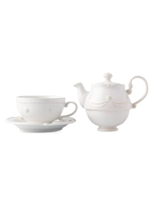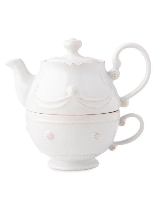 From the Berry & Thread Collection. Juliska’sdarling Berry & Thread individual set is a charming (and efficient) way to enjoy your Earl Grey tea or French roast coffee at any moment of the day; whether at your desk, beside, or curled up in a window. It makes a gorgeous little gift, and is also an extremely practical solution for every member of your household to enjoy their own particular beverage each morning. This handcrafted ceramic stackable tea set for one includes a teapot, teacup, and a saucer. A welcoming invitation for loving self care.