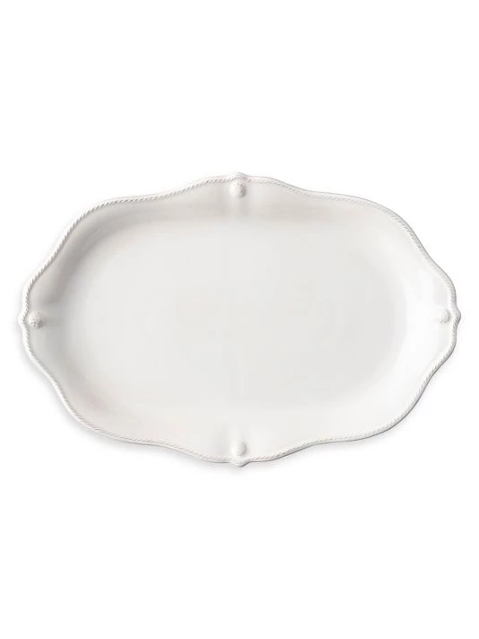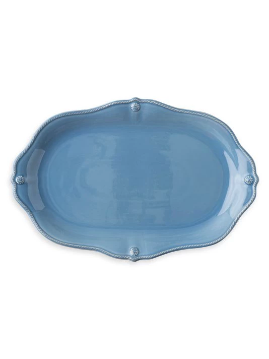 From the Berry & Thread Collection. Rimmed with a simple thread and adorned with a sprinkling of berries, this iconic dinnerware collection embraces historic motifs in a sublime blue hue. This 15 platter, with a subtly scalloped edge is perfect for serving a few or a feast, and goes seamlessly from oven to table.