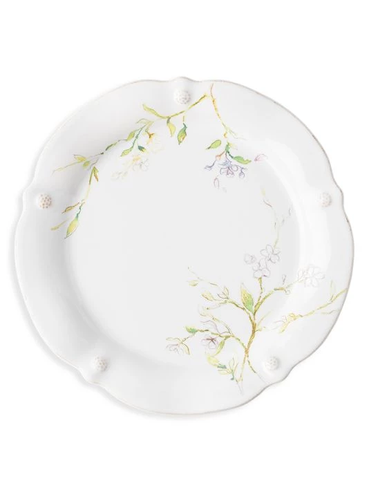 From the Berry & Thread Floral Sketch Collection. Framed with delicate white Jasmine blossoms, Juliska’s Floral Sketch Jasmine dinner plate captures a sketchbook’s spontaneous pencil and paint stokes in the form of dreamy watercolors, on the canvas of iconic berry and thread motifs. It’s like setting the table with little works of art.
