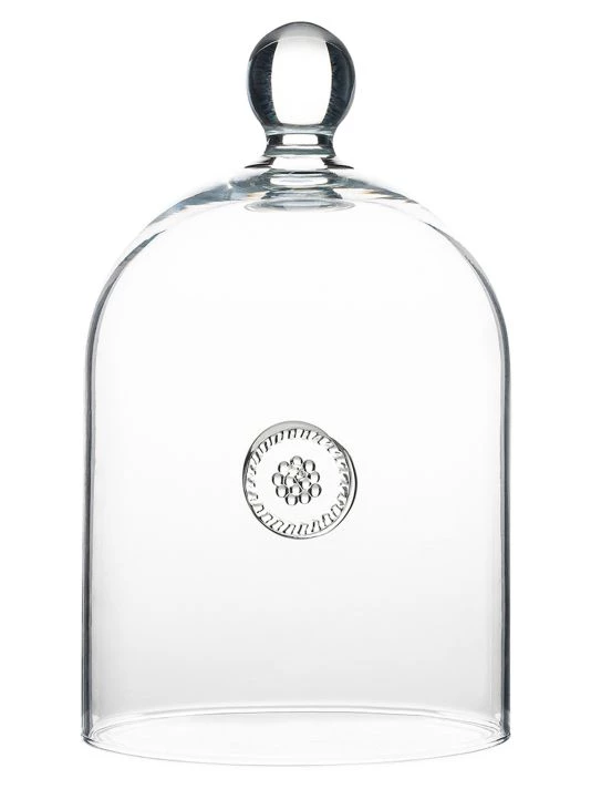 From the Berry & Thread Collection. Made from durable mouth-blown glass and detailed with Juliska’s handsome Berry and Thread medallion, this cloche is unmistakably classic in style and function. Made to comfortably house your most exquisite cakes and tartlets, ceramics, or create a stunning statement piece, this cloche centered on a kitchen island or table makes a special display.