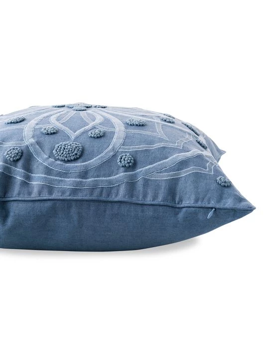 From the Berry & Thread Collection. Inspired by the Alcazar Garden in Spain, this pillow is made of luxurious soft linen, adorned with velvet applique and finished with hand-stitched French knot detailing.