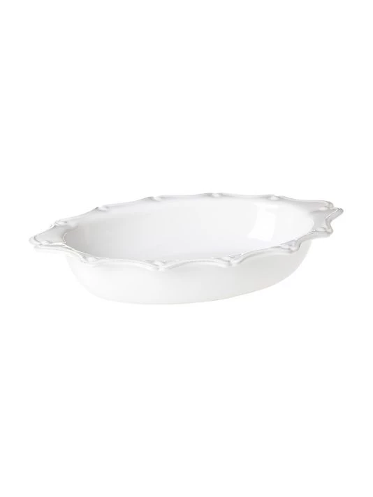 From the Berry & Thread Collection. Glazed ceramic oval baker with scalloped edges.