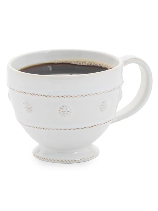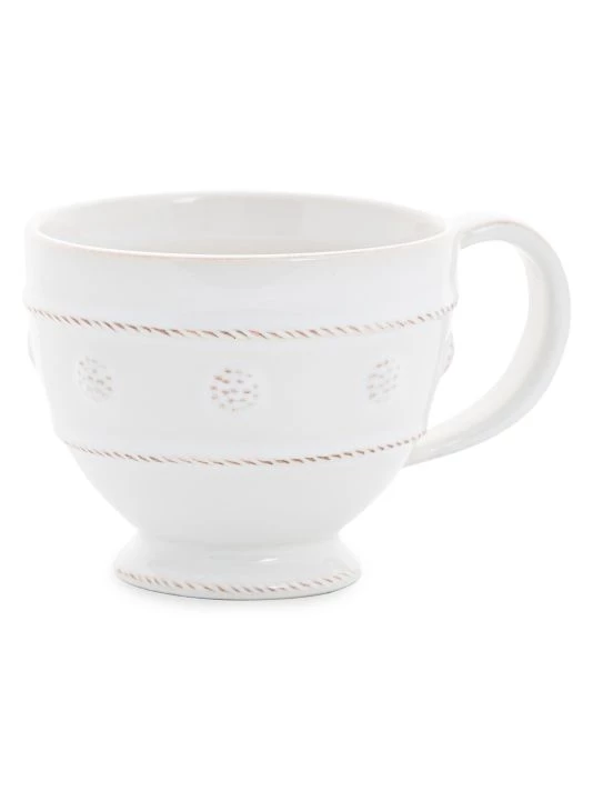 From the Berry & Thread Collection. Designed with a generous shape to accommodate hot cocoa or tea, this beautiful cup is crafted from whitewashed ceramic.