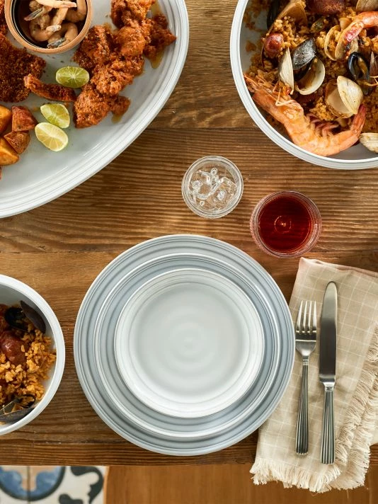 From the Bilbao Collection. A beautiful compliment to any table setting this versatile plate, with potter’s wheel detail and modern shaping, will beautifully showcase everything from fresh summer salads to cozy fireside confections.