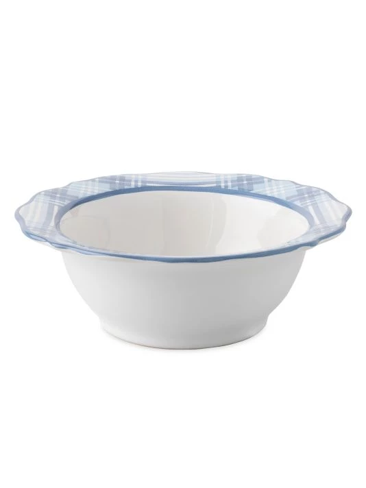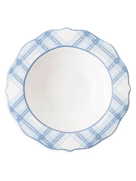 From the Tartan Collection. Designed with classic blue tartan trim, this versatile bowl has a scalloped edge for a modern twist.