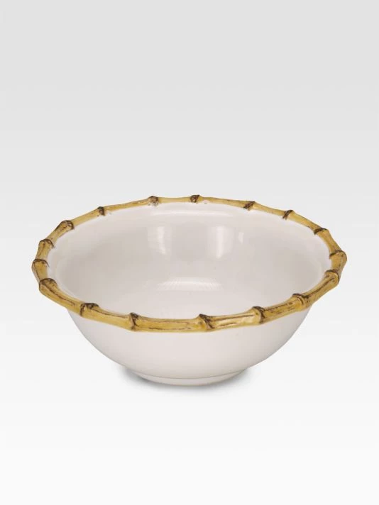 An elegant, extremely versatile cereal bowl in lasting ceramic stoneware with handpainted bamboo detail.