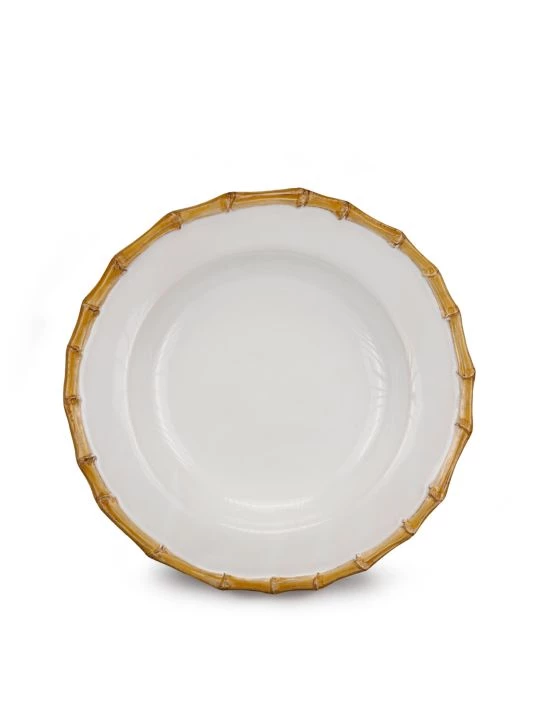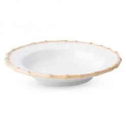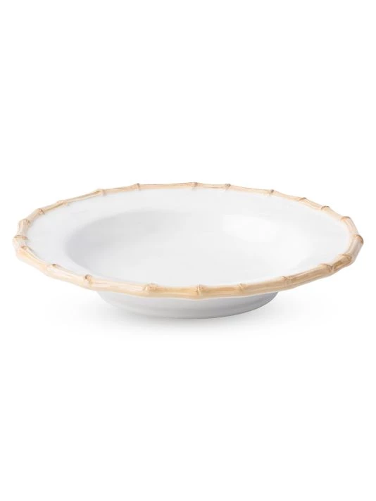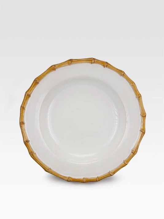An elegant, extremely versatile bowl for pasta, soup and more in lasting ceramic stoneware with handpainted bamboo detail.