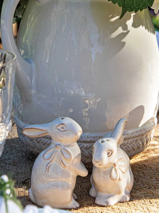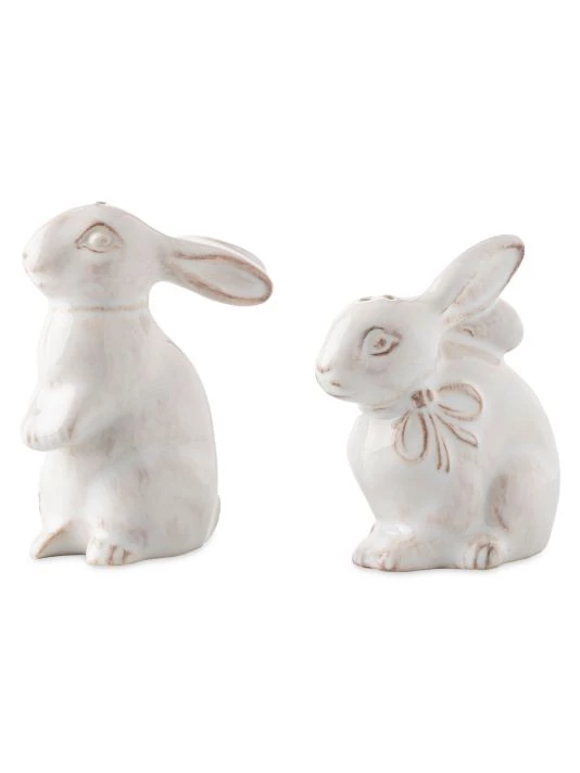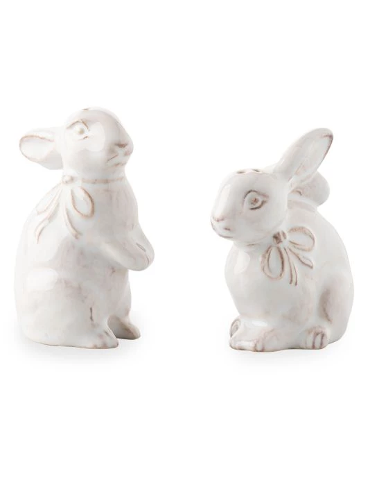 From the Clever Creatures Collection. Add charm to the table with these petite bunny salt and pepper shakers.