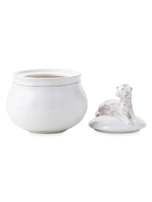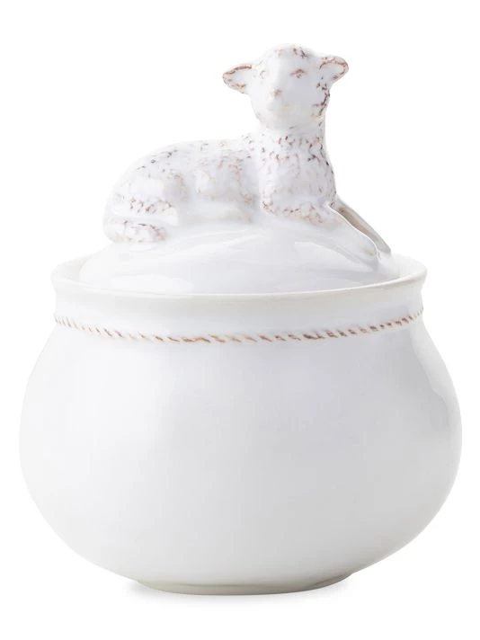 From the Clever Creatures Collection. From Juliska’s new Clever Creatures Collection-this sugar jar, adorned with a little lamb laying atop the lid, is sure to bring a smile to your face every time you go to add a spoonful of sugar to your morning coffee.