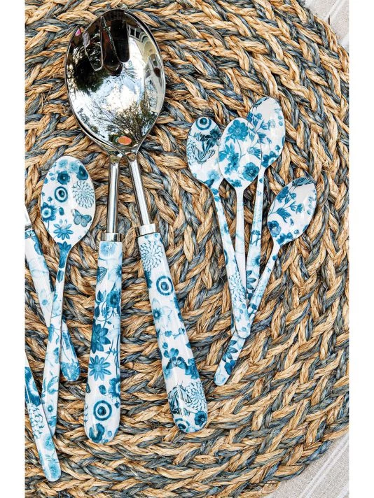 From the Field of Flowers Collection. This set of spoons features Juliska’s petite Field of Flowers motif layered over polished stainless steel.