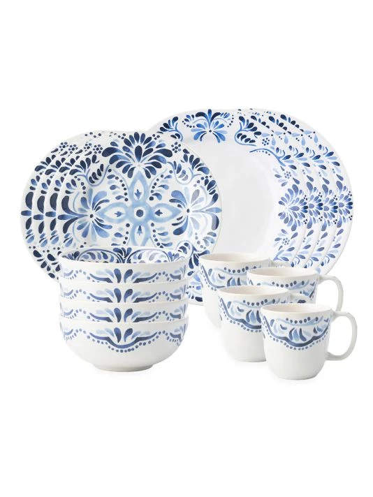 From the Iberian Collection. Journey to the Iberian coast with this 16-piece dinnerware set, designed with a beautiful tonal print. Ceramic stoneware. Dishwasher, oven, microwave and freezer safe. Imported.