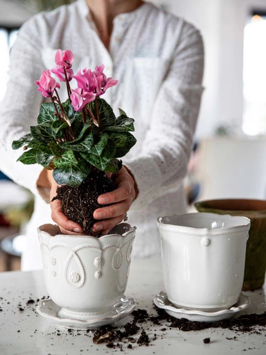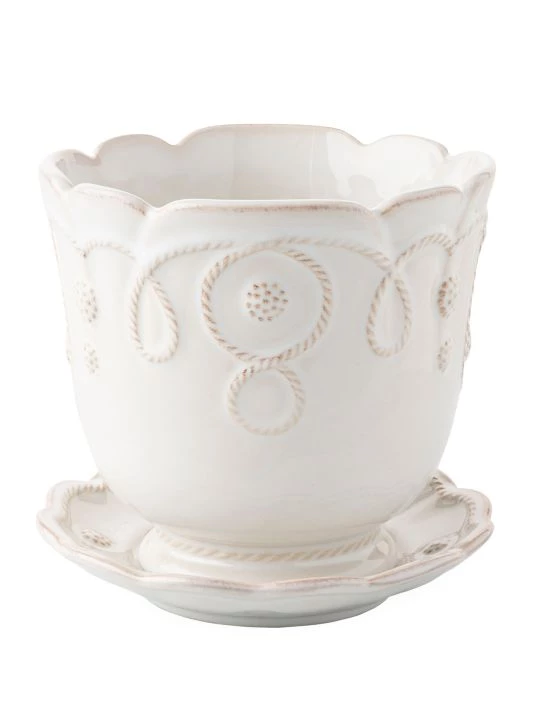 From the Jardins du Monde Collection. Subtly detailed, this pretty pot is designed with a textural finish and practical drainage to allow plants to thrive beautifully.