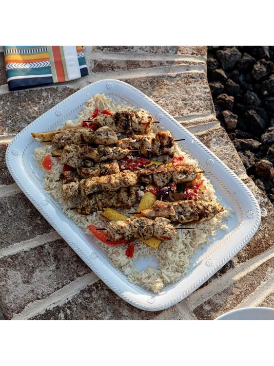 - Rustic serving tray enhanced with subtle berry and thread detailing