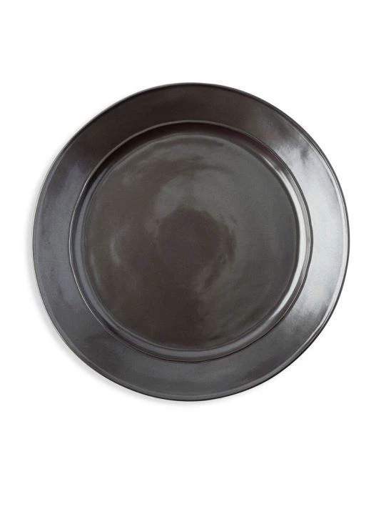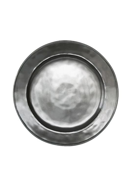 - Ceramic dinner plate designed with a unique mottling technique for a hammered look.