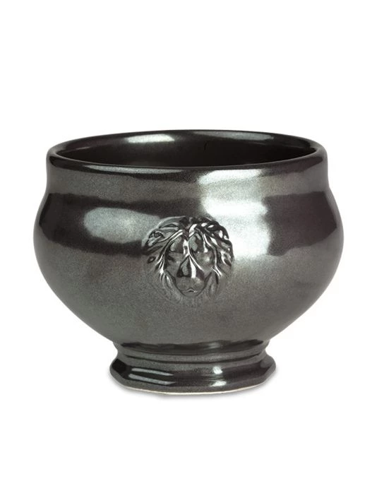 From the Pewter Collection. The elegant look of polished pewter in durable stoneware with a regal embossed lion crest.