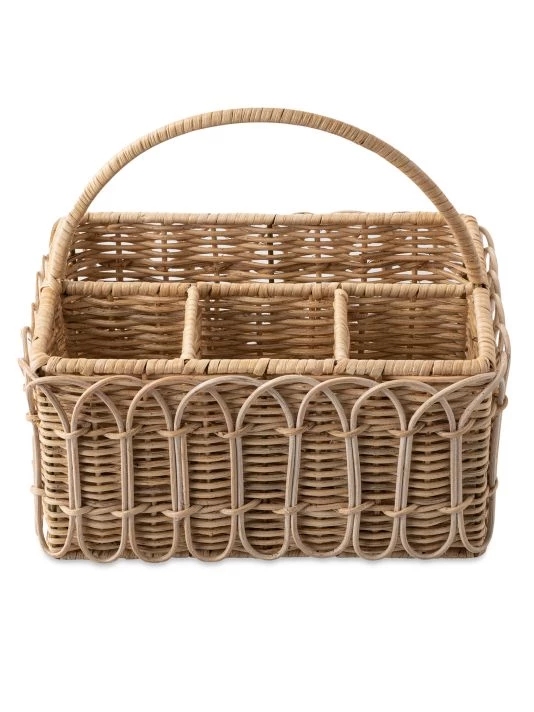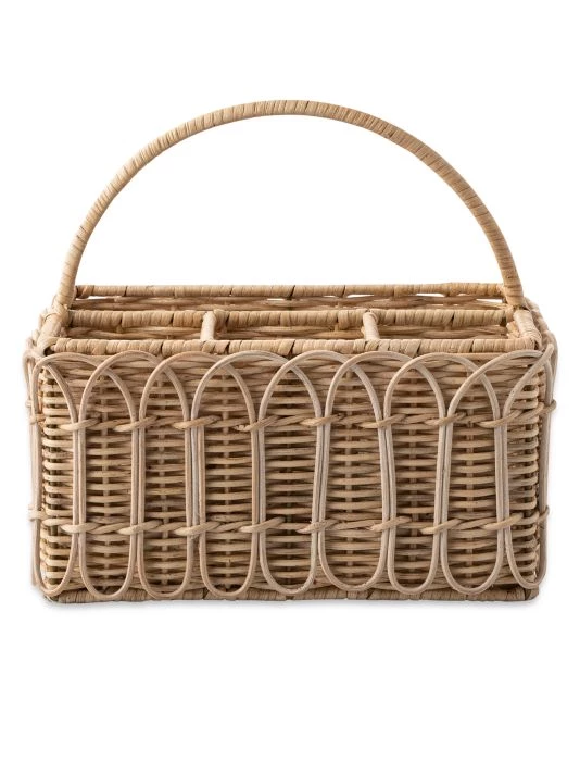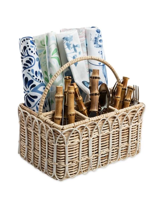 From the Provence Collection. Made of natural hand-woven rattan, this caddy organizes utensils, napkins and condiments for effortless buffets and alfresco feasts.