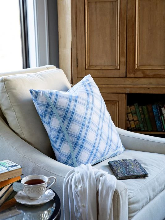 From the Tartan Chambray Collection. Crafted from tartan-print linen, this throw pillow has plush down fill.