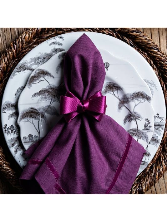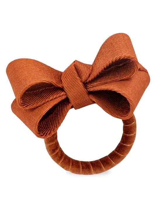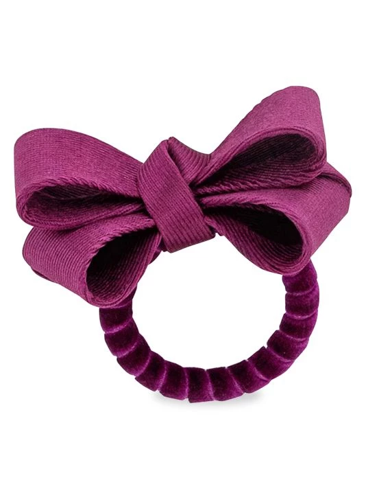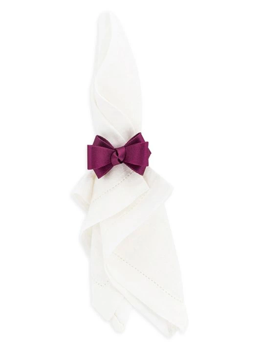 From the Tuxedo Collection. The shiny new silver tuxedo-inspired napkin ring was designed to dress up any holiday placesetting or commemorate a special occasion. Handsewn with rings wrapped in soft velvet ribbon, these shimmery metallic bows will add glamour to any table with festive flair.